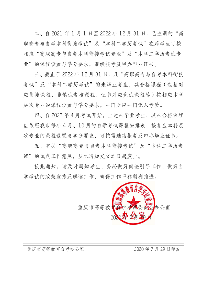 关于停止高职高专与自考本科衔接考试 及本科二学历考试的通知