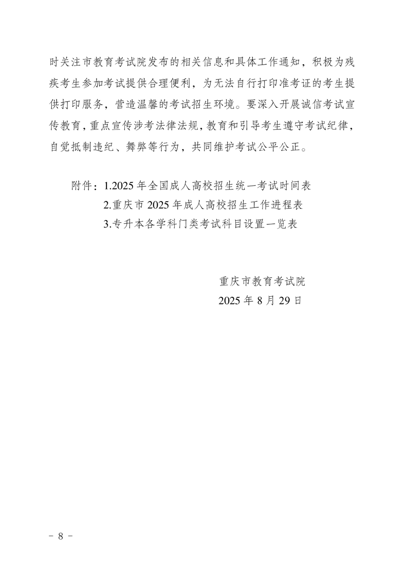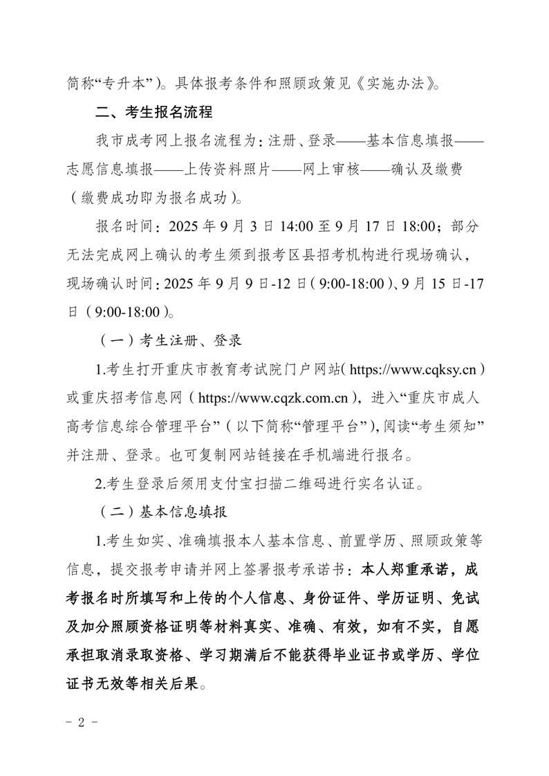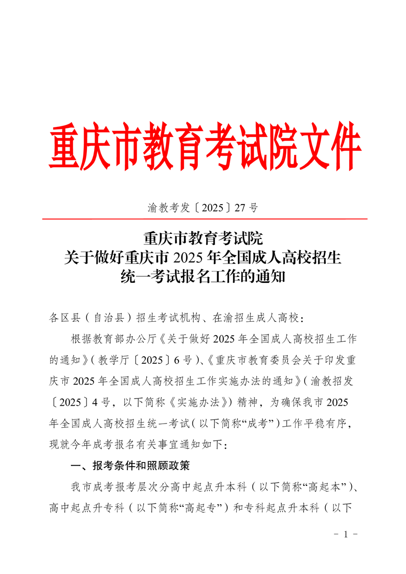 关于做好重庆市2025年全国成人高校招生统一考试报名工作的通知