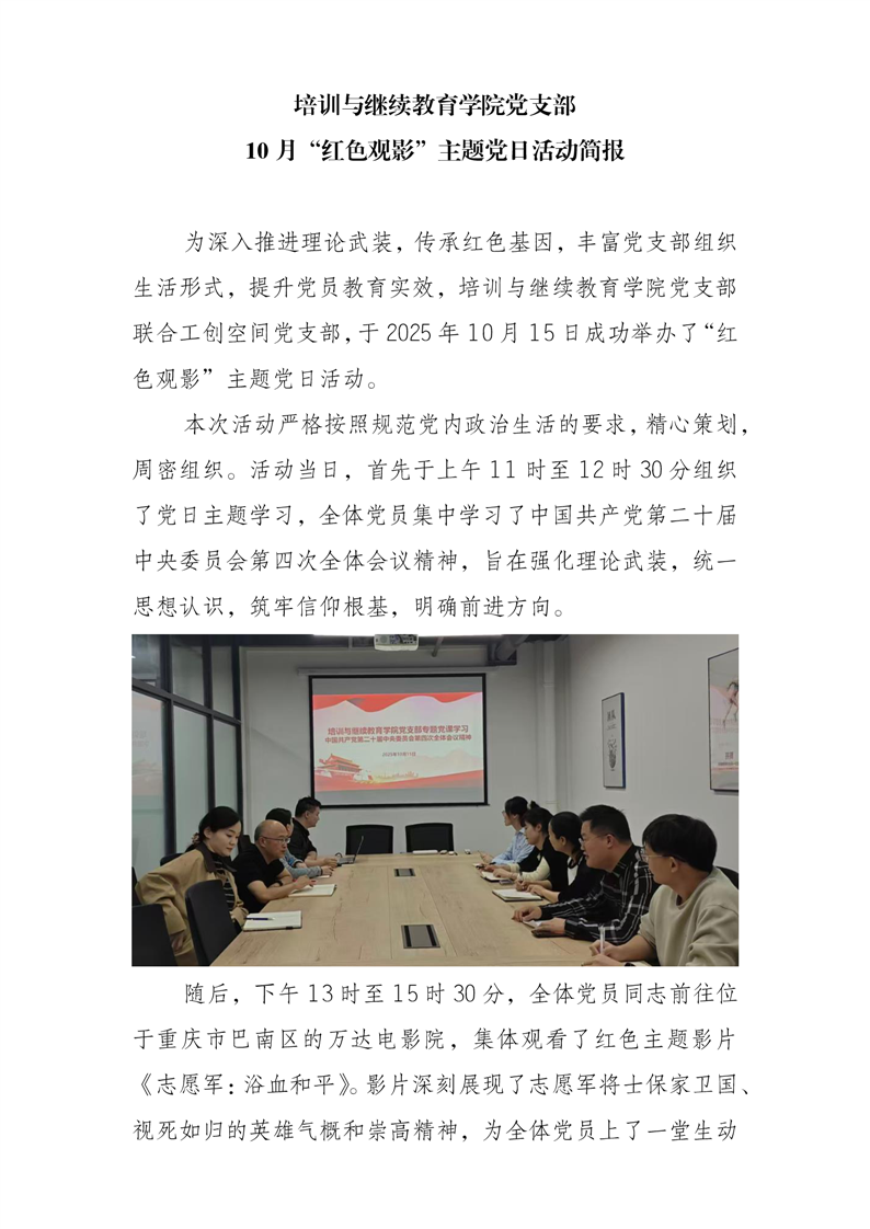 培训与继续教育学院党支部10月“红色观影”主题党日活动简报