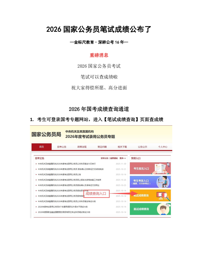 重庆工程学院-2026国家公务员笔试成绩公布