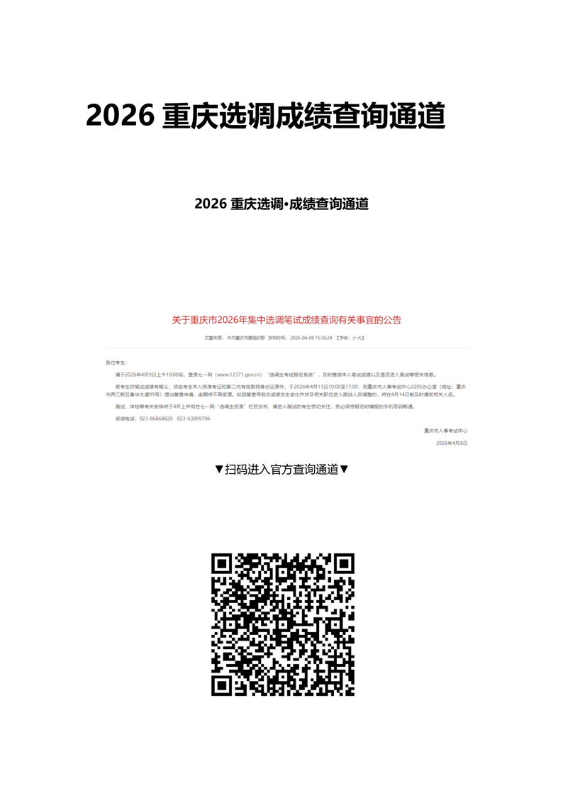 2026重庆选调成绩查询通道