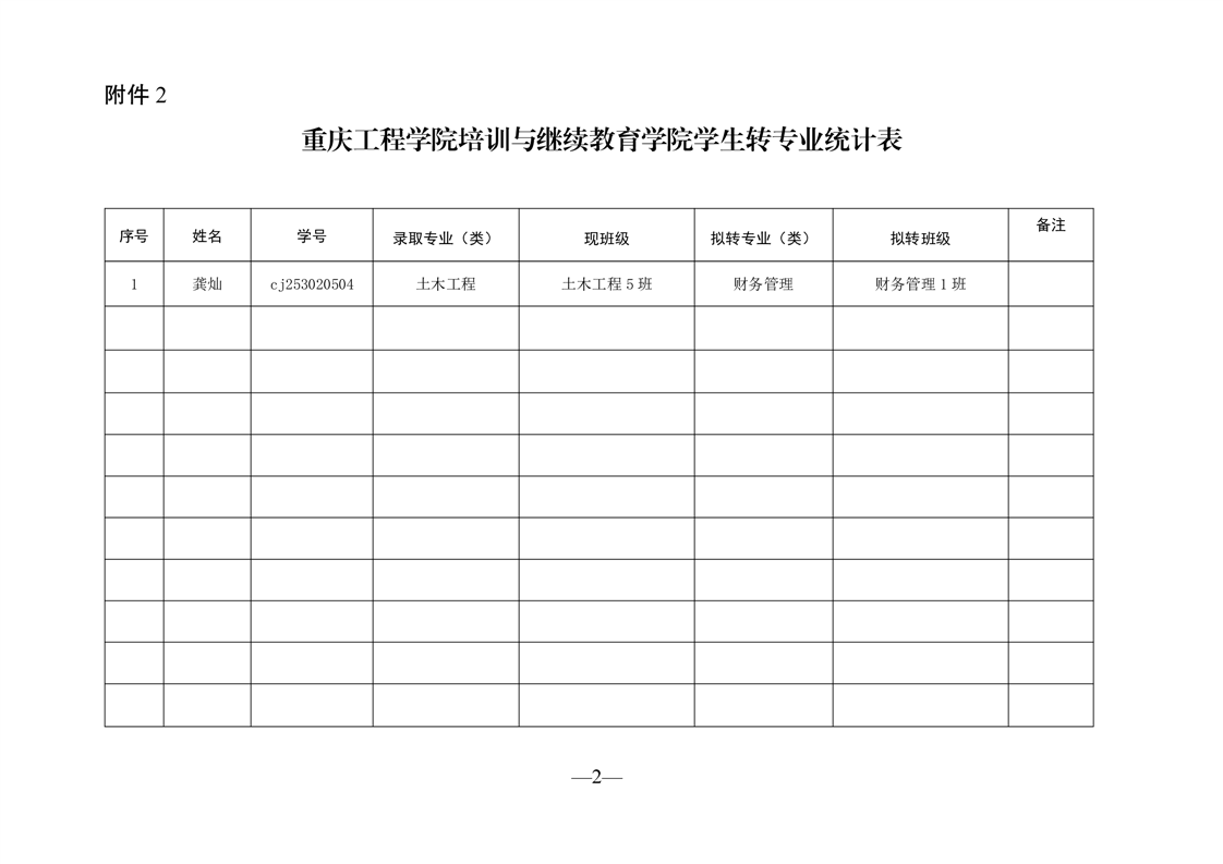 重庆工程学院培训与继续教育学院关于同意龚灿同学转专业的公示
